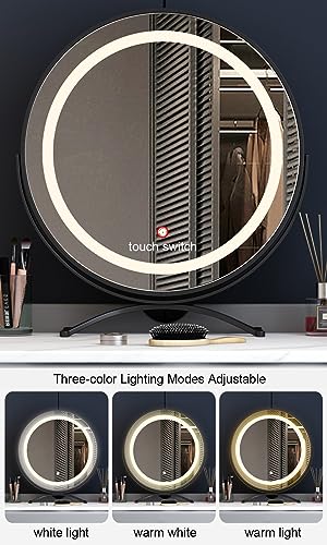 - 【Intelligent LED Lighting Mirror】Provide a soft yet unobtrusive light source with three color temperatures: white, warm white and warm. Intelligent touch control, wake up lights, one click turn on lights, high-definition mirror, soft light without hurting the eyes, meeting different makeup and skincare needs, allowing you to have exquisite makeup every day.