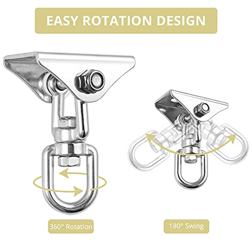 - 【360° Rotating Design】The swivel hook allows 360 degree rotation, easily changing direction without any tangling or twisting chair rope so that hammock chair never comes undone from the ceiling.