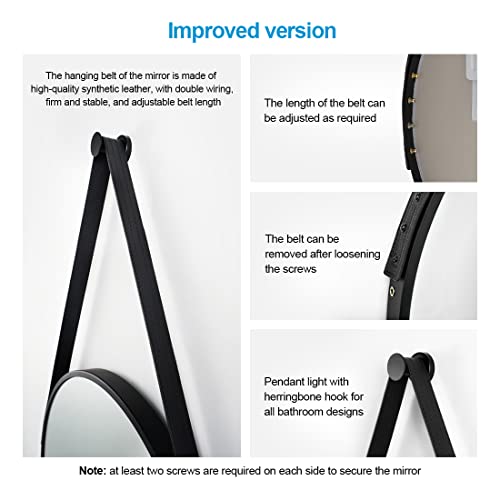 - Two Hanging Styles & Double Protection: Heilmetz round wall mirror with adjustable, removable straps (1.4 metres) and two hooks provide double protection for the mirror, preventing it from falling. You can easily customise the position and hanging of the mirror to suit different scenarios.