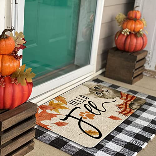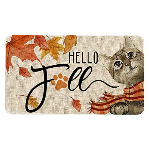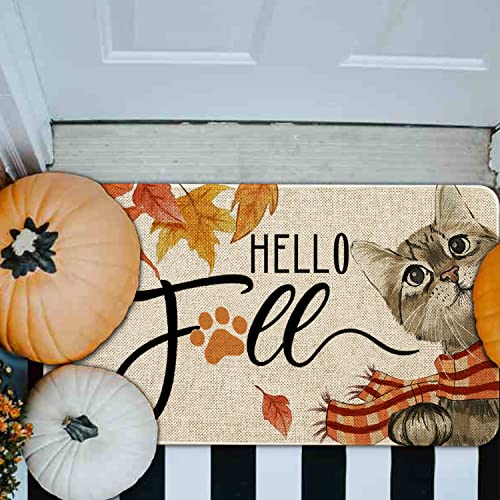- 【Perfect Size】: The size of this hello fall doormat is approx 30 x 17 x 0.3 inch, this low profile fall door mat is fits easily under the door. New printing technology applied stands wear and tear and keeps vivid color for a long time.