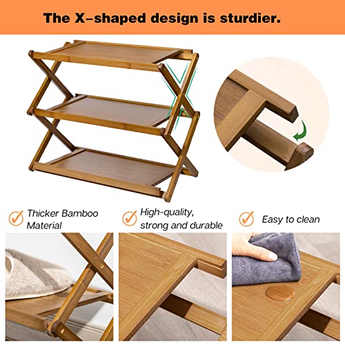 - Multifunctional Shelf: In addition to being a shoe stand, this foldable storage rack can be placed in the kitchen bedroom children's room and bathroom. This bamboo shoe rack can also be placed indoors and outdoors as a plant stand. All in all, this 3 tier bamboo shoe rack is ideal for narrow spaces.