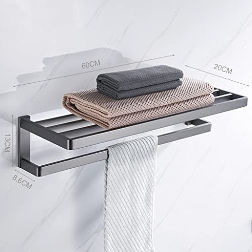 HIGOH Towel Rack High-End Towel Rack,Light Brushed Stainless Steel Simple Bath Towel Shelf Wall Mount,Bathroom Rack Hardware Bathroom Hardware