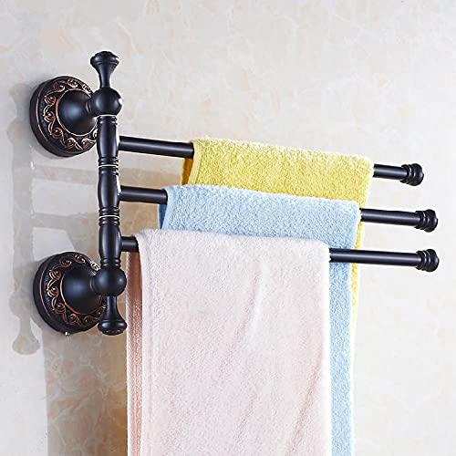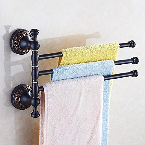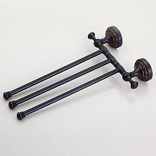 - 3 Rails Swivel 35Cm Black Brass Towel Bars Hanger