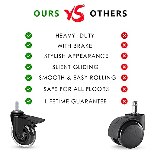 - QUIET & SMOOTH ROLLING: Made of high-tech elastic polyurethane, with internal bearings are quick rolling and the surface is sleek,wouldn't get stuck by crumbs,hair, wouldn’t damage on floors.