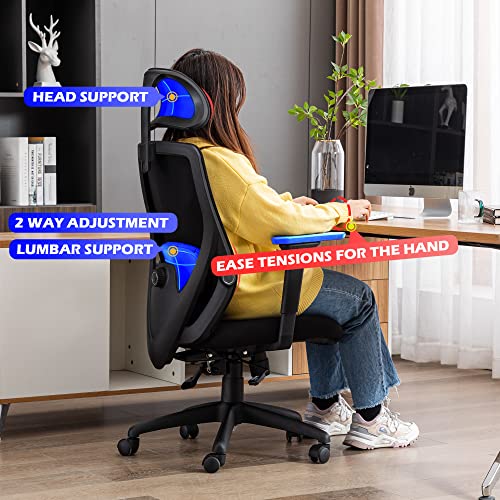 - 【Ergonomic Design】 - This ergonomic Office chair comes with 2-way adjustable lumbar support, W-shaped design seat and curved back to fit your body. Recline function makes you easier to relax whenever needed.