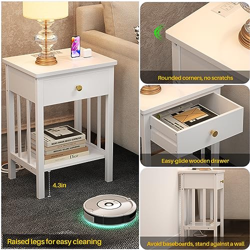 - Nightstand with Charging Station: Features 2 standard AC outlets and 2 USB ports to simultaneously charge devices such as phones, tablets, earphones, laptops, and lamps. It's a great idea as a bedside table in the bedroom or as an end table next to the sofa in the living room.