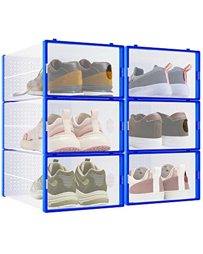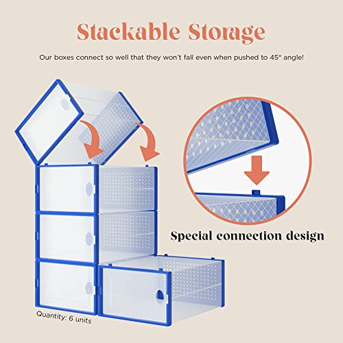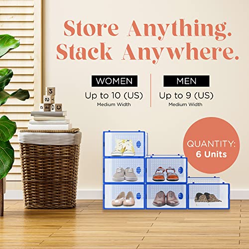 Home Pro Shop 6-Pack Shoe Storage Boxes - Shoes Organizer for Closet - Clear Plastic Stackable Shoe Containers - Clear Shoe Boxes Foldable for Sn