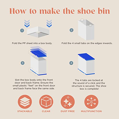 • Your Shoes, Our Business - Your shoes are valuable to you. That's why we made it our business to give them utmost protection. Our shoes organizer keeps your shoes dust-free and has a large ventilation hole to ensure air circulation and odor prevention. With its durable shatter-resistant foldable plastic and hard abs front frame, our shoe storage boxes are made to last a long, long time.