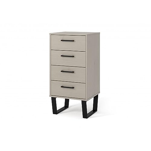 Home Bedroom Furniture Home Source Vigo 4 Drawer Tallboy Wooden Industrial Style Chest of Drawers Bedroom Storage Organiser, Grey