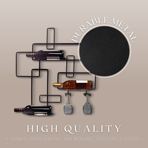 - Space Saving Design : The wine rack and glasses holder is equipped to hold 2 glasses and 3 wine bottles, with the wine glass holders hanging under shelf.
