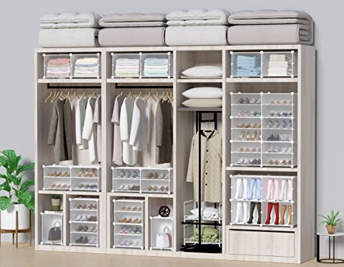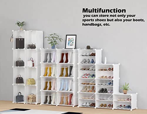 - DIY Expandable for Closet - This cube storage rack is portable and can be personalized according to your needs. Perfect fit for closet, you can put this shoe cabinet under your closet or on the closet compartment for easy storage of shoes, clothes, towels, hats, dolls, etc..Easy to Care The shoe storage is made of healthy and non-toxic environmentally friendly plastic. Due to the use of plastic materials, the shoe rack enjoys good waterproof and can be washed with water.