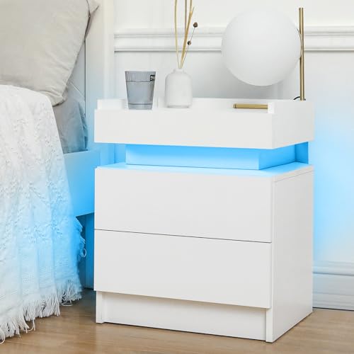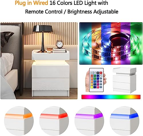 - 【APP / Remote Controlled RGB LED Lights】 The modern white led nightstand is equipped with over 16 millions RGB colors to choose (support DIY, voice control color adjustment), 4 flashing modes, music rhythm mode, brightness adjustment and timing fonction, can be adjusted by remote control and APP.