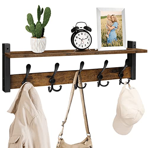 - QUICK AND EASY TO ASSEMBLE: Come with durable screws, anchors and easy-to-understand instruction, pre- drilled holes for mounting brackets, 5 hooks assembled on rail before package, the coat hook shelf can be easily installed to the wall firmly