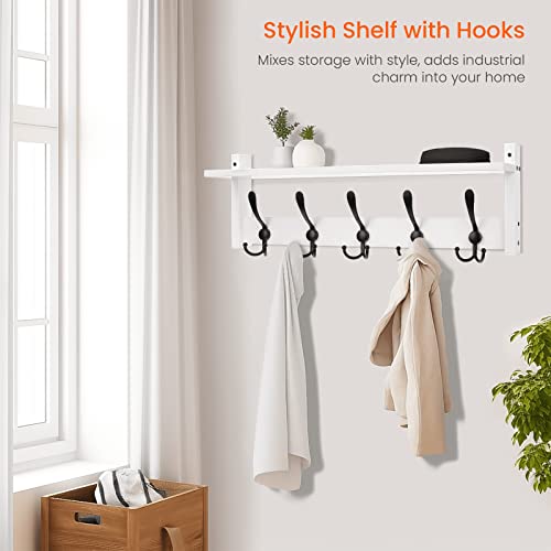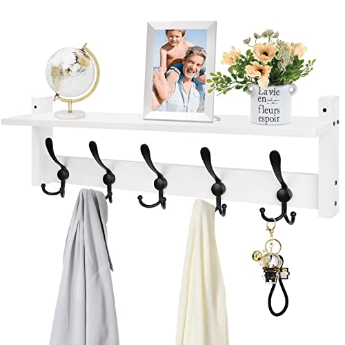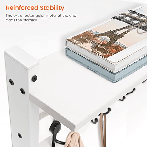 - A MORE CHANCE TO DECORATE: The 4.52" deep wall shelf provides a ample space to display pretty decorations, not only 5 metal dual hooks come in handy; Nice way to add hanging storage and organize your entry way or hallway, love to display photo frames, a potted plant or small decor on upper shelf