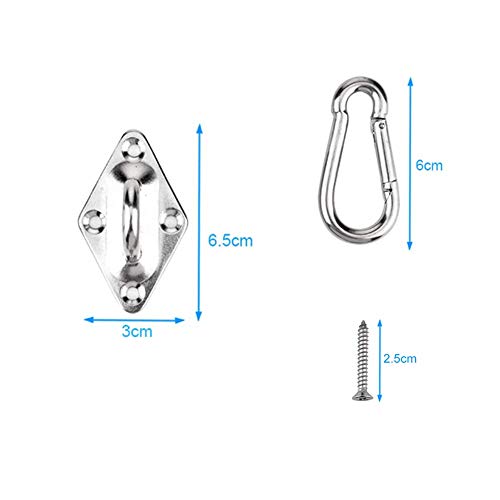 - Package Include: The package comes with 4 pad eye plates and 4 carabiner clips, with 16 screws and plastic plugs.
