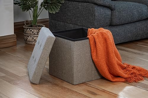 - [Ample Storage Capacity] Measuring 38cm x 38cm x 38cm , this collapsible ottoman provides a generous capacity, making it an ideal solution for tidily arranging your bed sheets, pillows, blankets, magazines, and other items.