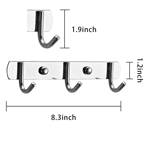Hook Rack Coat Hook with 3 Hooks, Rustproof Stainless Steel Wall Coat Rack Space Saving Coat Rack for Bedroom Cupboard Bathroom Kitchen 1 Pack