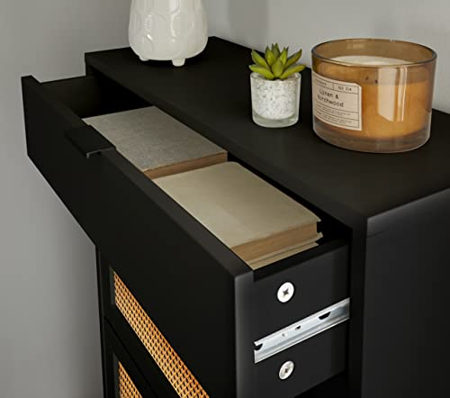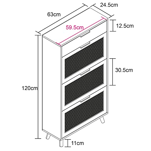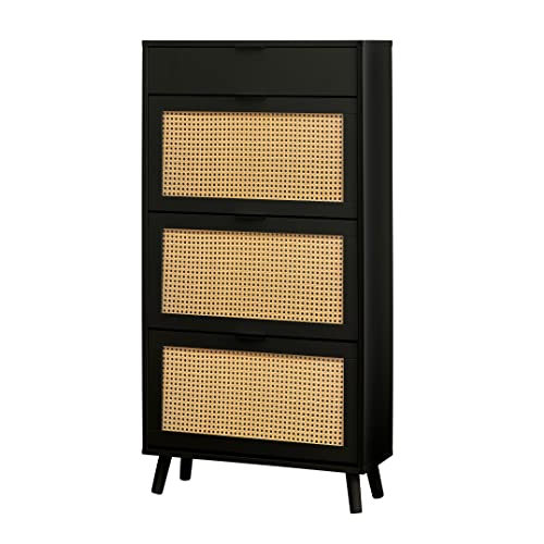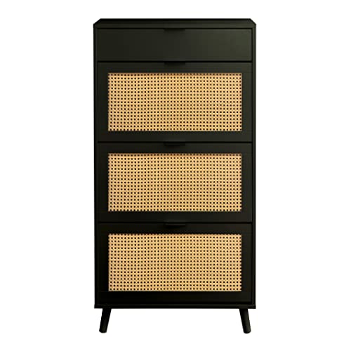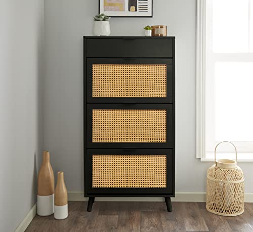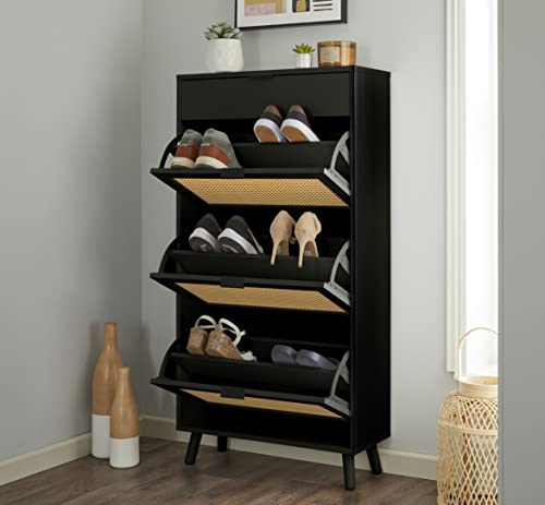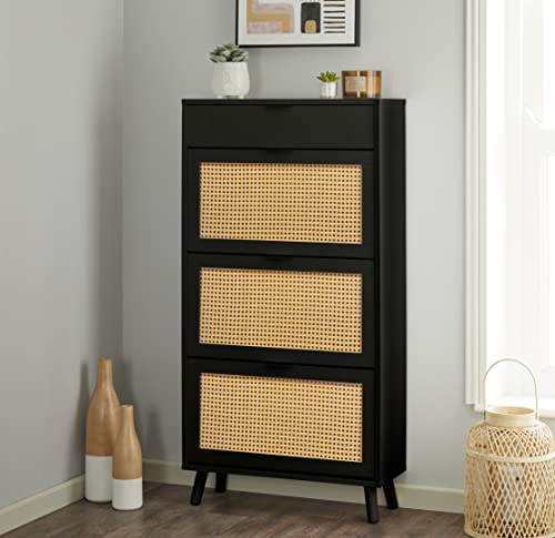 House and Homestyle Black & Rattan Style Shoe Hallway Storage Cabinet, H119cm x W63cm x D24cm