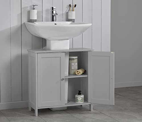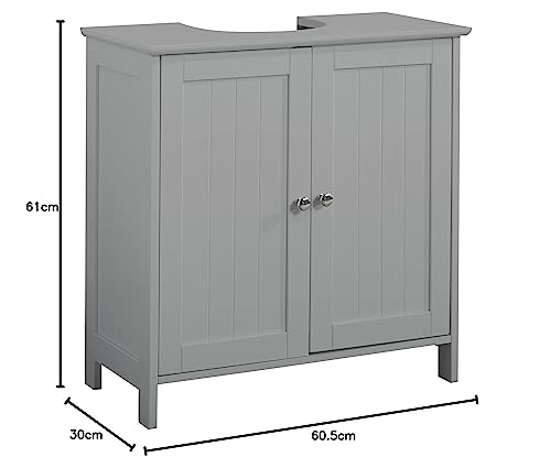 Home Bathroom Furniture House and Homestyle Grey Bathroom Under Sink Storage Cabinet, MDF, H61cm x W60.5cm x D30cm
