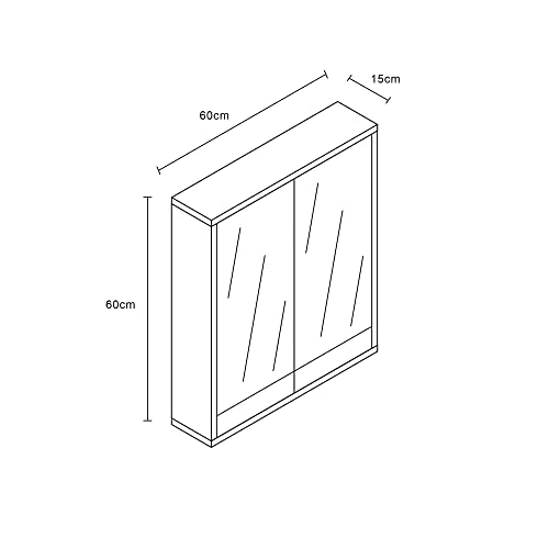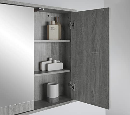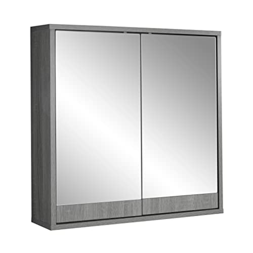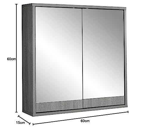 Home Bathroom Furniture House and Homestyle Grey Wood Effect Bathroom Storage Mirrored Cabinet, H60cm x W60cm x D15cm