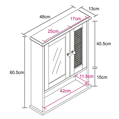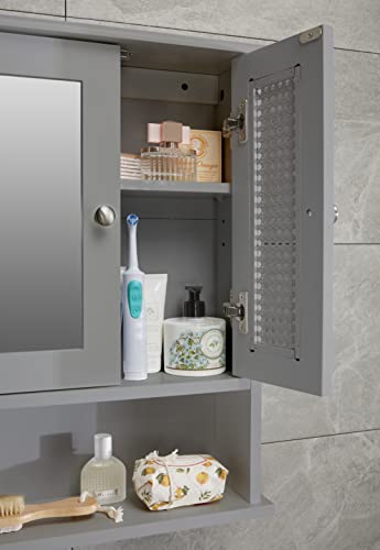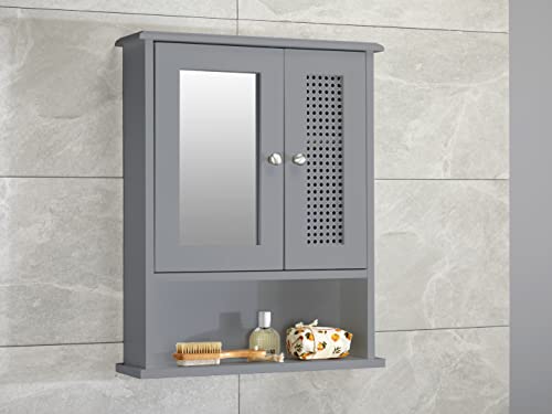 Home Bathroom Furniture House and Homestyle Mirrored Cabinet, Grey, H60cm x W48cm x D13cm