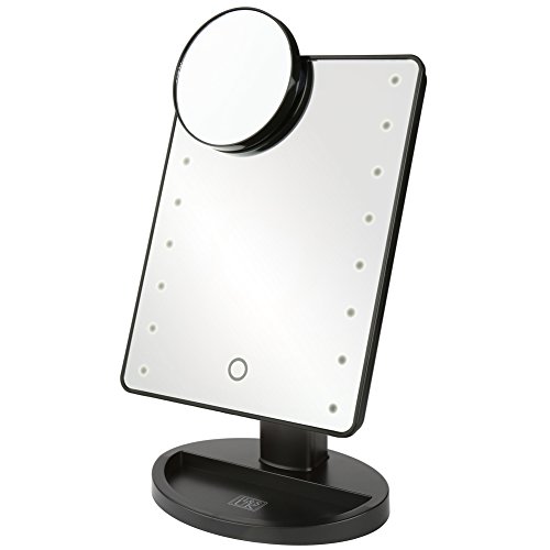 - This LED lights make up / cosmetic mirror is adjustable for many angles up to 180 Degrees. Comes with a small detachable 10X magnification / magnifying spot mirror