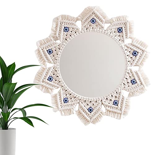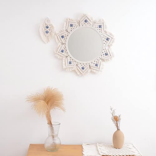 - ⇕Appealing Boho Decorations: Bohemian Mirror is 45 cm in diameter overall, with a 24 cm inner diameter. Hooks are included for quick and simple installation, making it perfect for home wall decor.