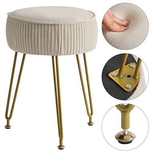- High quality material: The smooth circular soft seats are wrapped in luxurious velvet and equipped with cushions inside, bringing you ultimate comfort. The sturdy base has three metal legs and is decorated with a gold powder coating for stability and aesthetics. This stool will be the ideal choice for you at home.