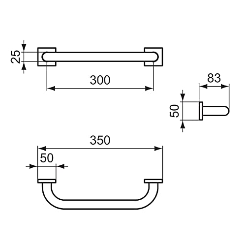 Home Bathroom Furniture Ideal Standard IOM Square 300mm Grab Rail, Chrome, E2203AA
