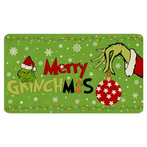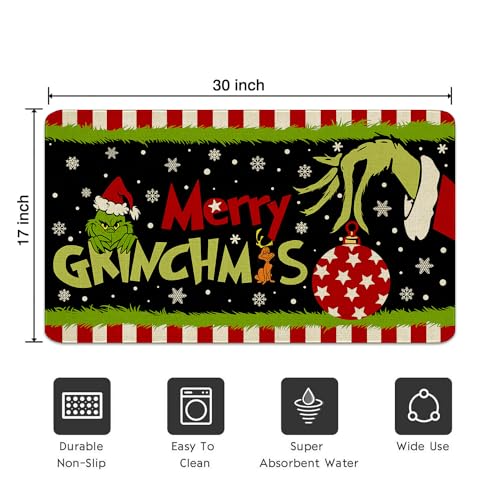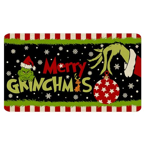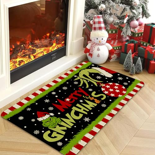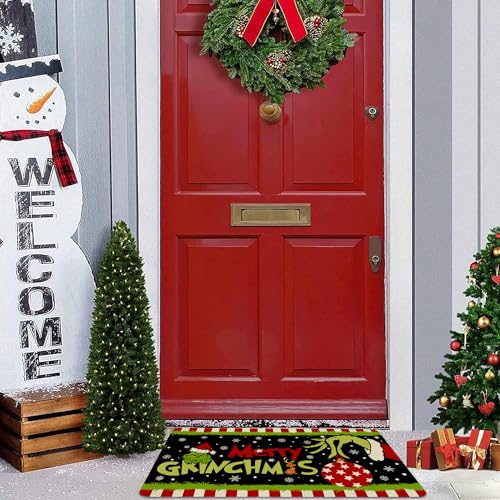 Ideasonna Grinch Door Mat Merry Christmas Doormat Outdoor Christmas Mats for Front Door Christmas Rugs Indoor Grinch Door Decoration 17" x 30"