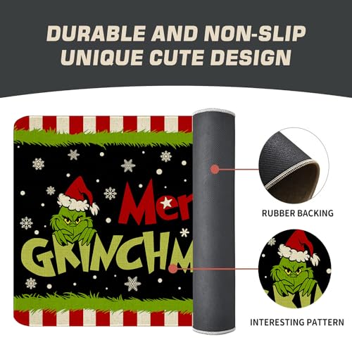 • 【DURABLE MATERIAL】 The surface of the grinch doormat is made of high-quality 5% polyester and 95% rubber, backed with non-slip recycled rubber. Christmas front door mat can keep the floor clean and prevent the elderly and children from falling.