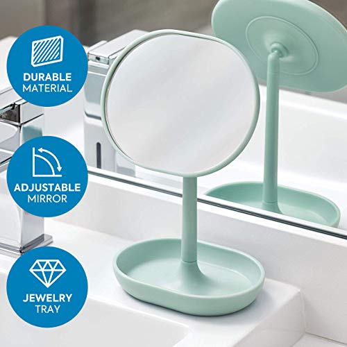 - Compact Size: The cosmetic mirror with tray measures just 16.5 cm x 11.4 cm x 25.5 cm; these compact dimensions mean it can easily fit on the wash basin or dressing table