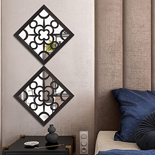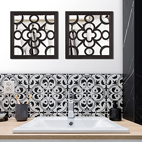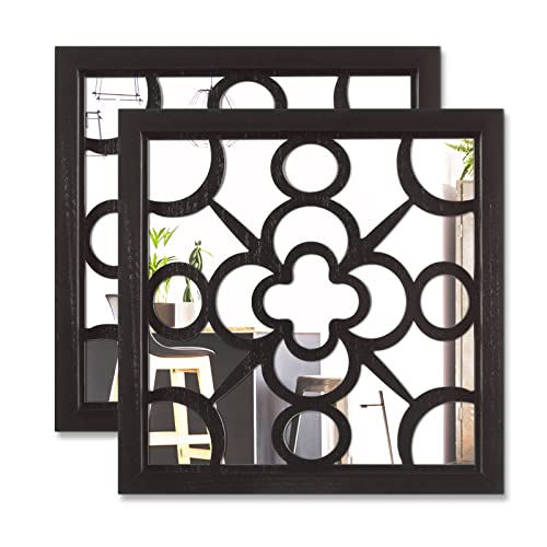 ikkle Square Wooden Mirror Wall Decor, 2 PCS Decorative Mirror for Wall Decor for Living Room, Bathroom,Entryway, 30.48X30.48CM Farmhouse Bathroo