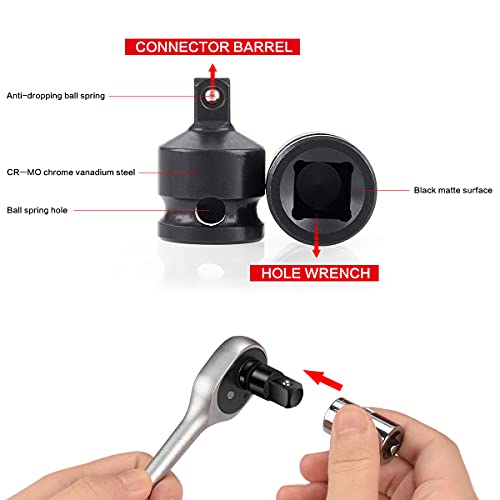 - ◎【DESIGN CONSIDERATIONS】 The adapters' spring-loaded detent balls securely latch sockets, Get the most out of your sockets with this handy set of adapters and reducers that insure you'll always have the right size for the job