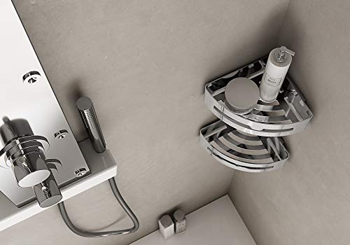 Home Bathroom Furniture INDA Collapsible Corner Storage Basket, Stainless Steel, White, 20 x 20 x 6 cm