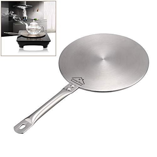 - HIGH-TECH DESIGN: The cooking heat diffuser and handle are made of stainless steel. The long heat proof handle make it easy for you to use it without any risk of burning yourself. And you can also hang this induction hot plate next to your stove for easy and quick access.