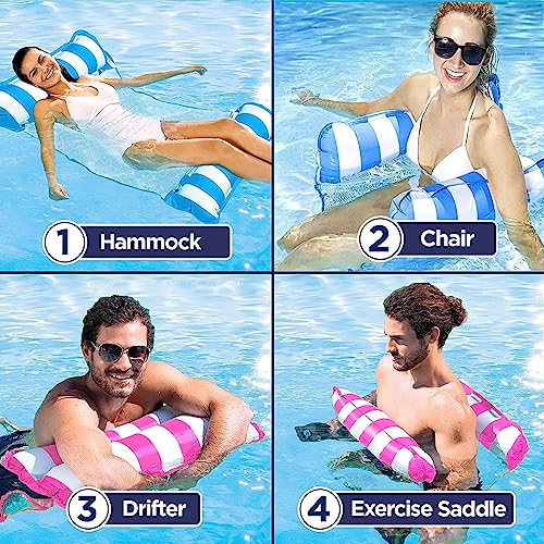 - 🏊【4-IN-1 FLOATING HAMMOCK】:Packing include 5 Packs-2 PCS Inflatable Floating Hammock,2 PCS Waterproof Phone Case,1 PCS Pump, Made of premium PVC material, Zcaukya inflatable pool float is designed in a hammocks look – two inflatable bars connected by a piece of mesh fabric. Expect as a water hammock, to meet your various needs, the floatie can also work as drifter, water saddle and floating lounge. Ideal for people over 10 years old.