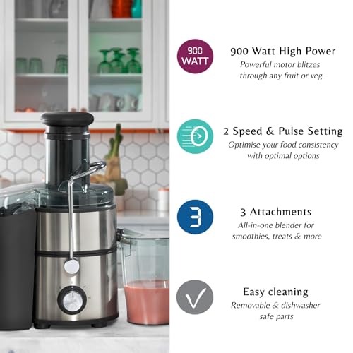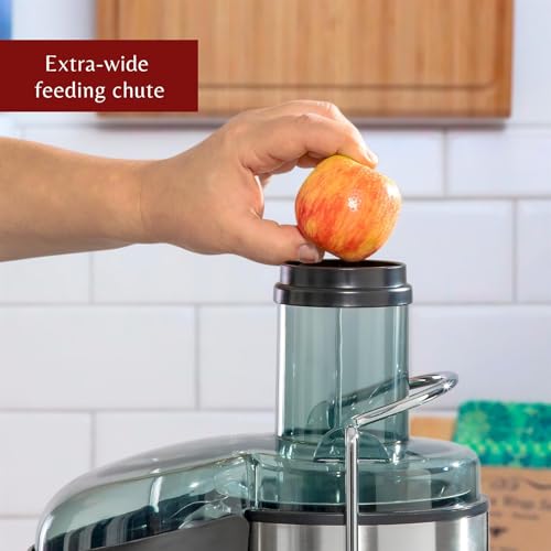 • QUICK & EASY TO INSTALL: Design that is simple and easy to install, with an anti-drip function to prevent leakage and removable parts for easy cleaning. The feeding chute is extra wide for clean and simple juice extraction.