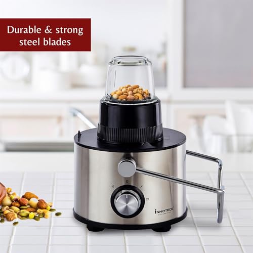 Product Description MAKE FOOD PREPARATION SIMPLE AND BETTER WITH THE INNOTECK KITCHEN PRO 3 IN 1 JUICER BUNDLE SET 3 IN 1 JUICER BLENDER GRINDER SET KITCHEN FOOD PROCESSOR Introducing the brand new Innoteck Kitchen Pro 3 in 1 Juicer Bundle Set. This will create the very best in kitchen preparation for any Kitchen!Because of its versatility, this machine makes an ideal appliance that is also cost-effective. This 3 in 1 juicer set is designed and engineered to the highest standards and creates a simple and easy kitchen companion for any level of cooking skills. Just select whether you want to Juice, Blend, or Grind with the high-quality Glass attachments and within moments you will be on your way to creating fresh juices, soups, mixes, and pastry! The aim of mixing is to ensure that there is uniformity of composition between the mixed ingredients that represent the overall composition of the mixture. The primary objective of mixing is to make a homogeneous product using the minimum amount of energy and time. Innoteck Kitchen Pro 3 in 1 Juicer Blender Grinder Set This 3 in 1 juicer/ blender/grinder set is more than just a juice extractor; it can also be used for blending, mixing, chopping, and grinding! This 3 in 1 juicer set machine is designed for chefs of all skill levels and will quickly become your go-to for the kitchen and can be a best gift at any of the occasion. SAFETY: UK CA approved & produced with food-grade materials. It hardened stainless steel blades and filter for juicer, blender and grinder. Great for Soup, Juice, and Fresh Coffee Elegantly Designed for Practicality & Efficiency . Please refer to the instruction manual for relevant support information. SPECIFICATION: Elegant Design For Cost Effective Food Preparation Quick & Easy To Install Best Chef Or Housewife Gift Non-Slip Feet 2 Speed Control with Pulse Gear Adjustment Stainless Steel Blades and Filter for Juicer, Blender, and Grinder THIS 3 IN 1 JUICER BLENDER IS AN EXCELLENT APPLIANCE THAT IS SUPERBLY DESIGNED AND IMPROVES THE LOOK OF ANY KITCHEN GRINDER A grinder is a tool used to break down food or ingredients into small bits so they are a similar size and consistency.The grinder can be used to grind coffee beans to powder as well as guacamole among other foods etc.Food processor easy to assemble. The detachable parts are easy to clean, which makes it much easier to clean the food scraps at the bottom of the cup. WHY WE LOVE IT: It’s a centrifugal juicer, blender & grinder – all in oneExtra-wide feeding chute can fit a whole appleAnti-drip spout stops flowing to prevent any spillageRemovable parts are dishwasher safe for easy cleaningPulse mode helps you achieve the ideal consistencyPowerful 900W motor blitz’s through fruit, veg and ice IT WILL SAVE YOU A LOT OF TIME WHEN PREPARING FOOD, MEETS YOUR MOST DEMANDS OF COOKING PREPARATION STAINLESS-STEEL Regulator over the machine helps you to control the speed of the machine according to your needs of food consumption. Great for soup juice and fresh coffee. Stainless-Steel body of the machine helps it retain energy and does not allows it to heat-up fast. Elegantly designed for practicality & efficiency. Durable wire which connects the machine with electricity to make it run. One of the best quality wire to protect the appliance from short-circuit or current. Easy and no messy juice outlet of the machine makes it more convenient for you to buy. Pipe nozzle over the juicer help the juice to flow in one direction. ENJOY HEALTHY LIFE TO MAKE FRUIT AND VEGETABLE JUICES, FOOD PROCESS OR MILKSHAKES, SMOOTHIES, COCKTAILS AND MORE IN A SHORT TIME DURABLE WIRE A juicer separates the fiber from the rest of the fruit or vegetables. This leaves only the juice for you to drink. The remaining fiber pulp is discarded. For easy and clean juice extraction, the feeding channel is exceptionally broad.This means that you can pack more fruit or veggies per cup, and you get all your vitamins and nutrients in the most easily digestible form.With an anti-drip mechanism to prevent leaking and replaceable parts for easy cleaning, this design is simple and straightforward to install. WHAT’S IN THE BOX: 1 x Juicer, 1 x Pushing bar, 1 x Transparent cover, 1 x Juicing filter, 1 x Middle ring, 1 x Residue tank, 1 x Top cover, 1 x Mixing cup cover, 1 x Mixing cup, 1 x Sealing ring, 1 x Grinding cup, 1 x Mixing cutter, 1 x Grinding cup DESIGNED WITH A SLEEK STAINLESS STEEL BODY AND BLACK ACCENTS, THIS FANTASTIC DEVICE WILL LOOK MODERN ON ANY KITCHEN WORKTOP