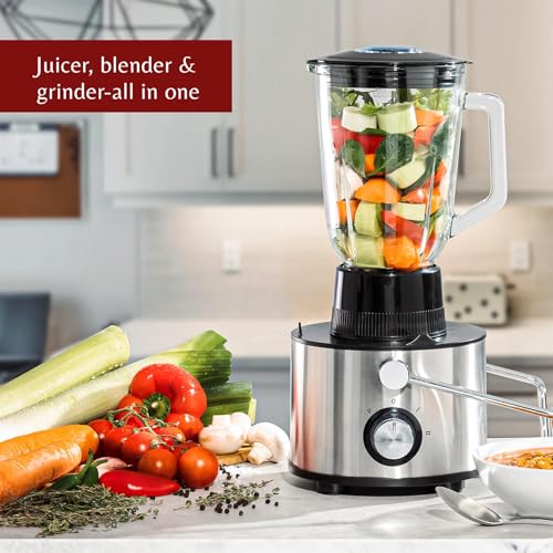 • ELEGANT DESIGN FOR COST EFFECTIVE FOOD PREPARATION: Because of its versatility, the Juicer/Grinder makes an ideal appliance that is also cost effective. This 3 in 1 Juicer Blender is an excellent appliance that is superbly designed and improves the look of any kitchen.