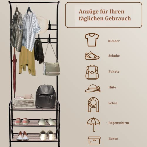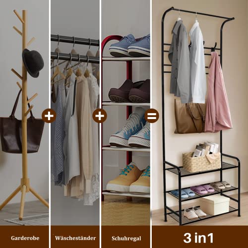 - FULLY FUNCTIONAL COAT RACK: With 16 coat hooks and 3 tier shoe rack, the coat stand helps you keep your entryway neat and tidy, keep your clothes and items organised and easy to access, satisfy your a variety of storage demand, large capacity, space saving, concise and convenient.