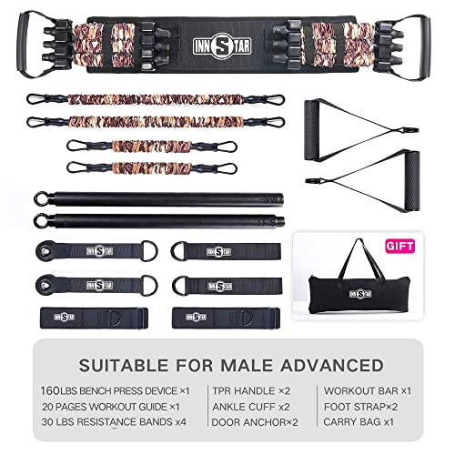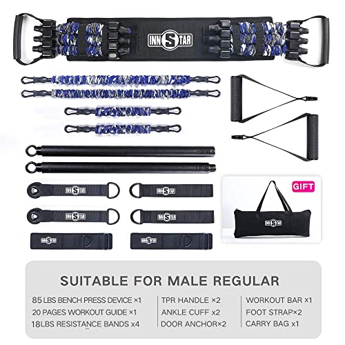 - ★SHAPE YOUR WHOLE BODY TONE YOUR MUSCLE: 9 different accessories could combine into different combos to tone and shape. Work your arm, legs and butt with two size resistance bands, achieve perfect chest training with bench press device, stimulate your core with squat resistance band and burn you leg muscle with foot straps!