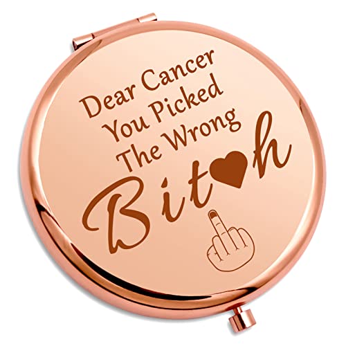 • Breast Cancer Survivor Gifts for Women- Personal Makeup Mirror engraved with '... You Picked The Wrong ....'When you feel exhausted, look back at the path you have taken, just remember how far you have come and how many difficulties you have overcome.Always keep in mind that you are the strongest warrior.Each of us has great energy and courage in our bodies, just like sunflowers.Even in the darkest time,will also find the sunshine.