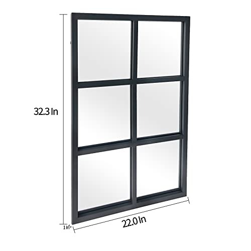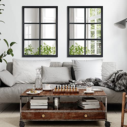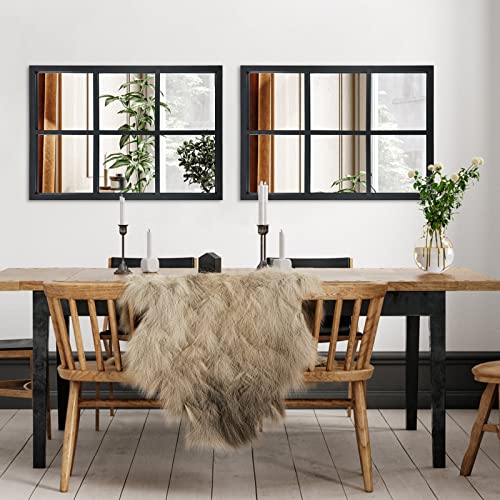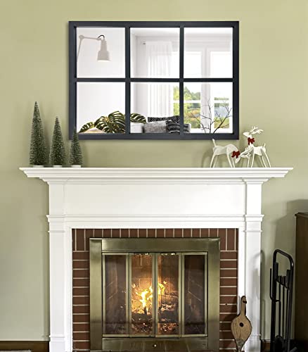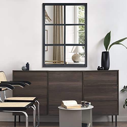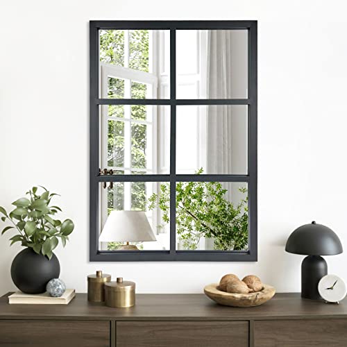 ironsmithn Wall Mirror Farmhouse Rectangular Window Mounted Decorative Long Hanging Decoration for Bathroom Vanity, Living Room or Bedroom (Black