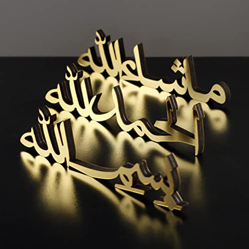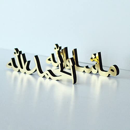 - ✅ HIGH QUALITY RAMADAN DECOR - Islamic Art Products are designed for tables, shelves or walls. Shiny gold and silver ones are produced from 1.2 mm acrylic-coated medium density fiberboard (MDF) and the black ones are from black MD islamic table decor for ramadan tables.