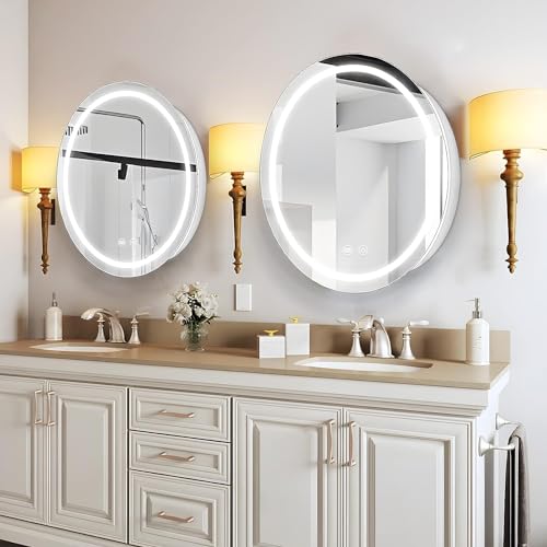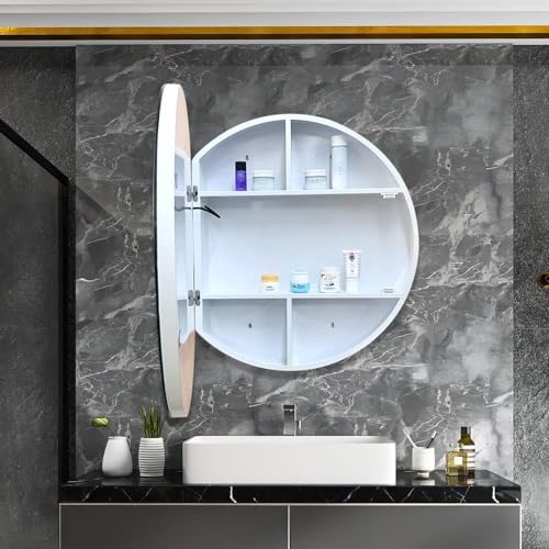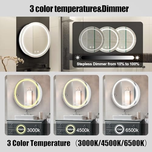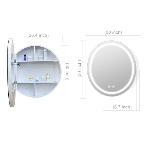 Janboe 30 inch Round Medicine Cabinet with Lights,Led Medicine Cabinet with Defogger,Illuminated Mirror Cabinet for Bathroom,Dimmable,Defogger,3