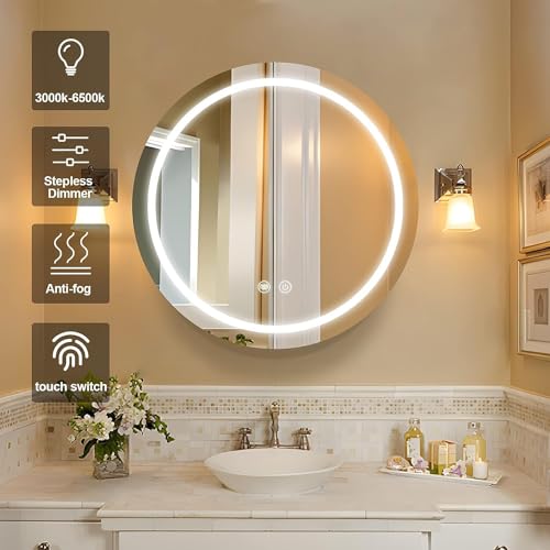 HomeBathroom Furniture Janboe 30 inch Round Medicine Cabinet with Lights,Led Medicine Cabinet with Defogger,Illuminated Mirror Cabinet for Bathroom,Dimmable,Defogger,3