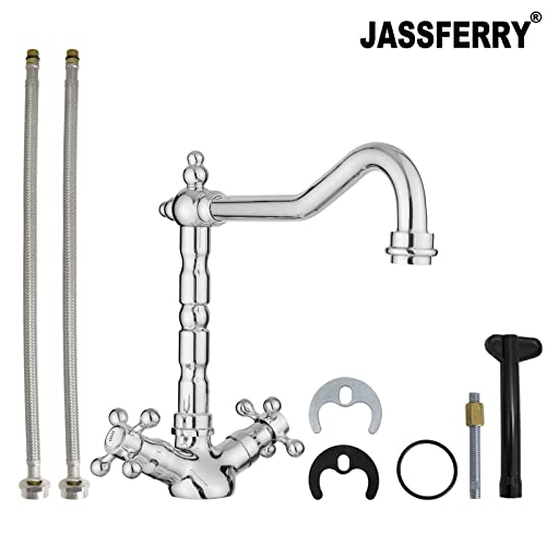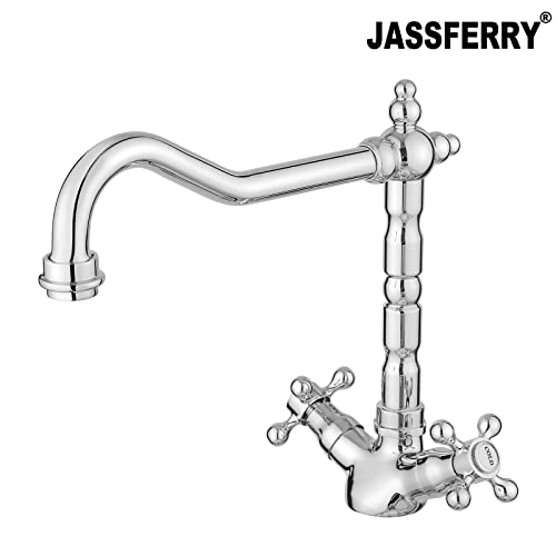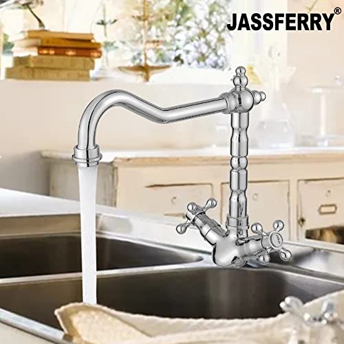 JASSFERRY Vintage French Mixer Tap Traditional Crosshead Handles Monobloc Kitchen Sink Faucet with Swivel Spout Chrome Polished