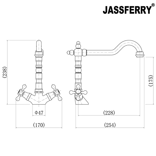 Be the first to review “JASSFERRY Vintage French Mixer Tap Traditional Crosshead Handles Monobloc Kitchen Sink Faucet with Swivel Spout Chrome Polished”