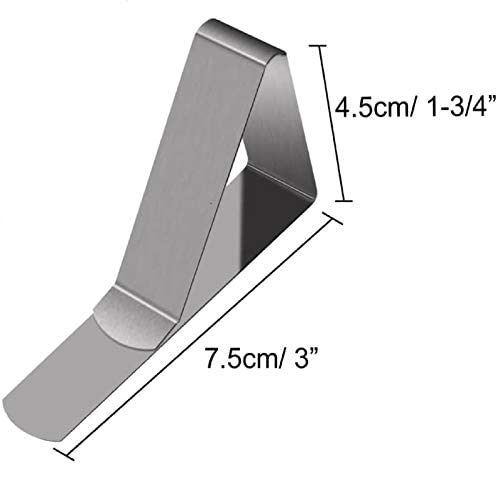 • 【Clips Sizes】Each tablecloth holder is approx. 2.95 x 1.77 inches. Fits most table thicknesses (below 1.5inches). Multiple clips use together will make cloths even firmer, these clips can hold tablecloths tightly in place.